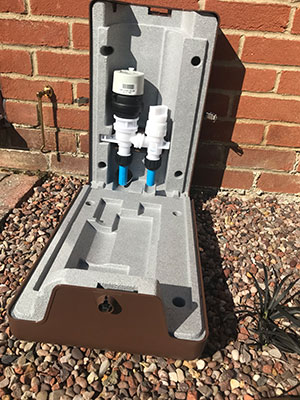 Groundbreaker is an insulated, surface mounted enclosure for a secure water management system and smart water meter. This locates the meter above ground, providing a better environment for smart technology over traditional underground boundary boxes, extends signal transmission and allows easy meter exchange.